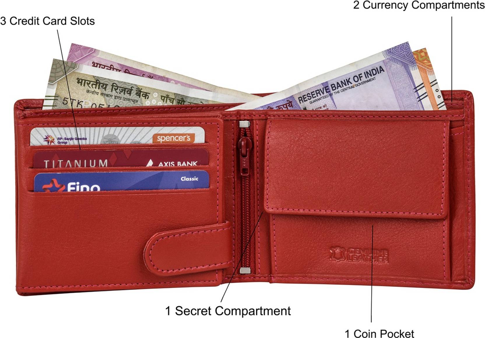 Snughorn Men Red Genuine Leather Wallet – Mini (6 Card Slots)